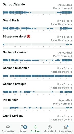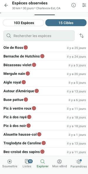 Ainsi, si mon amie Philippe, qui habite l’île aux Coudres, observe un harfang des neiges chassant au-dessus des anciennes tourbières, je le saurai immédiatement en consultant l’application sur mon appareil. Si le harfang figure sur ma liste « cible » des oiseaux à voir dans le territoire de Charlevoix, et l’application le mettra en évidence.