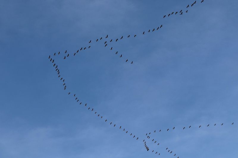 À l’automne, au contraire, c’est le calme, presque l’harmonie lors des grands rassemblements. Le guide d’observation demeure dans la voiture, car l’automne, le plumage de bien des espèces devient terne, anodin. On admire les mouvements d’oiseaux et non les individus.
