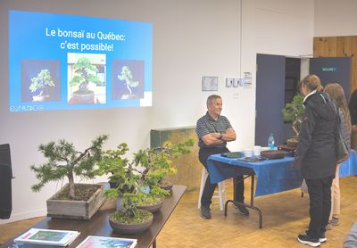 Comme le précisait M. Poulin, « Le bonsaï au Québec : c’est possible ! On pense souvent à tort que posséder et entretenir des bonsaïs c’est impossible et trop compliqué au Québec. » La conférence avait pour but de démystifier le sujet et de permettre aux amateurs de tenter l’aventure (à peu de frais).